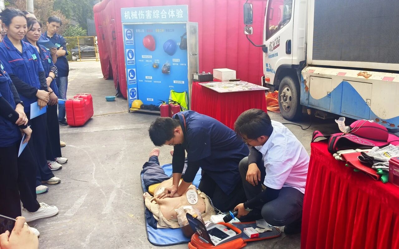 實操體驗環(huán)節(jié)采用“沉浸式實訓+場景化應用”的模式,推動安全知識從“聽懂”向“會用”轉(zhuǎn)化,切實將安全技能融入員工日常操作。在心肺復蘇體驗區(qū),講師手把手糾正按壓位置、力度與頻率,確保能掌握標準動作;海姆立克急救教學中,邀請員工上臺模擬“異物卡喉”場景,生動演示腹部沖擊法;消防逃生環(huán)節(jié)模擬濃煙環(huán)境,讓低姿匍匐、濕毛巾捂鼻等技巧在實踐中固化;現(xiàn)場發(fā)放的《機械制造行業(yè)工傷預防宣傳手冊》,更是讓安全知識從課堂延伸到家庭與崗位,真正實現(xiàn)“一次培訓,長期受益”。