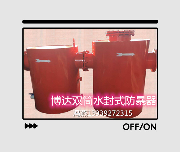 雙筒水封式防爆器采用雙罐結(jié)構(gòu),其水封水位觀測(cè)直觀、能夠快速有效排污、連接方便、安裝防護(hù)性好、耗水量小且水封水位恒定、工作阻力穩(wěn)定、泄壓部件承壓強(qiáng)度大等優(yōu)點(diǎn),并形成大、中小系列產(chǎn)品、滿足不同客戶的要求。